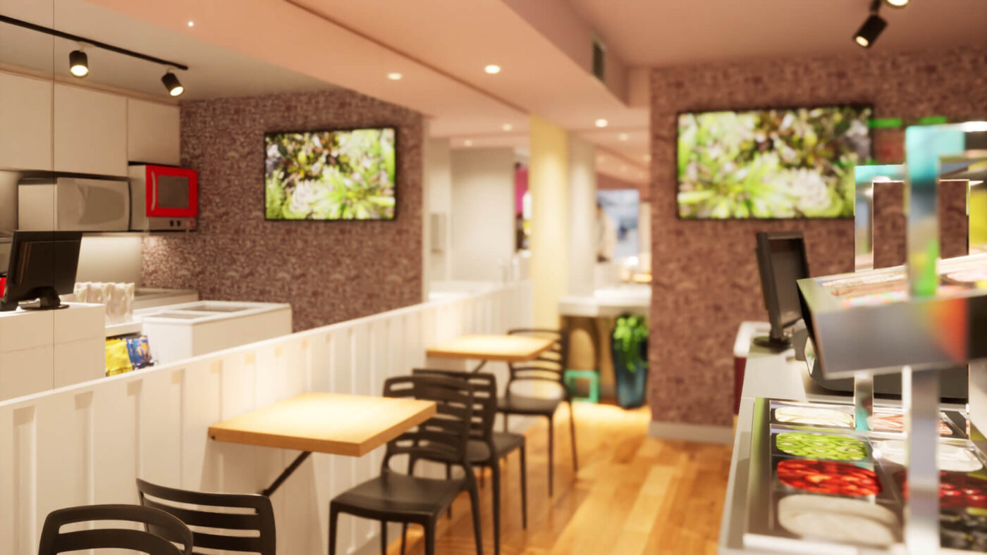 Local: Belo Horizonte. A segunda unidade da sorveteria Friulli foi um projeto desafiador e gratificante para nós. Nosso objetivo foi criar um ambiente aconchegante e moderno que atendesse às necessidades do público-alvo, que são principalmente os alunos do colégio Magnum e transeuntes em busca de lanches rápidos, açaí e sorvetes de qualidade. O espaço compacto exigiu um planejamento cuidadoso, para que todos os elementos fossem bem distribuídos e garantíssemos um fluxo de trabalho otimizado. Utilizamos elementos de design que combinaram cores vibrantes e alegres com elementos naturais, como madeira e plantas, trazendo um toque de frescor e jovialidade ao ambiente. Além disso, desenvolvemos também a parte técnica, incluindo elétrica, hidráulica e o detalhamento dos móveis.