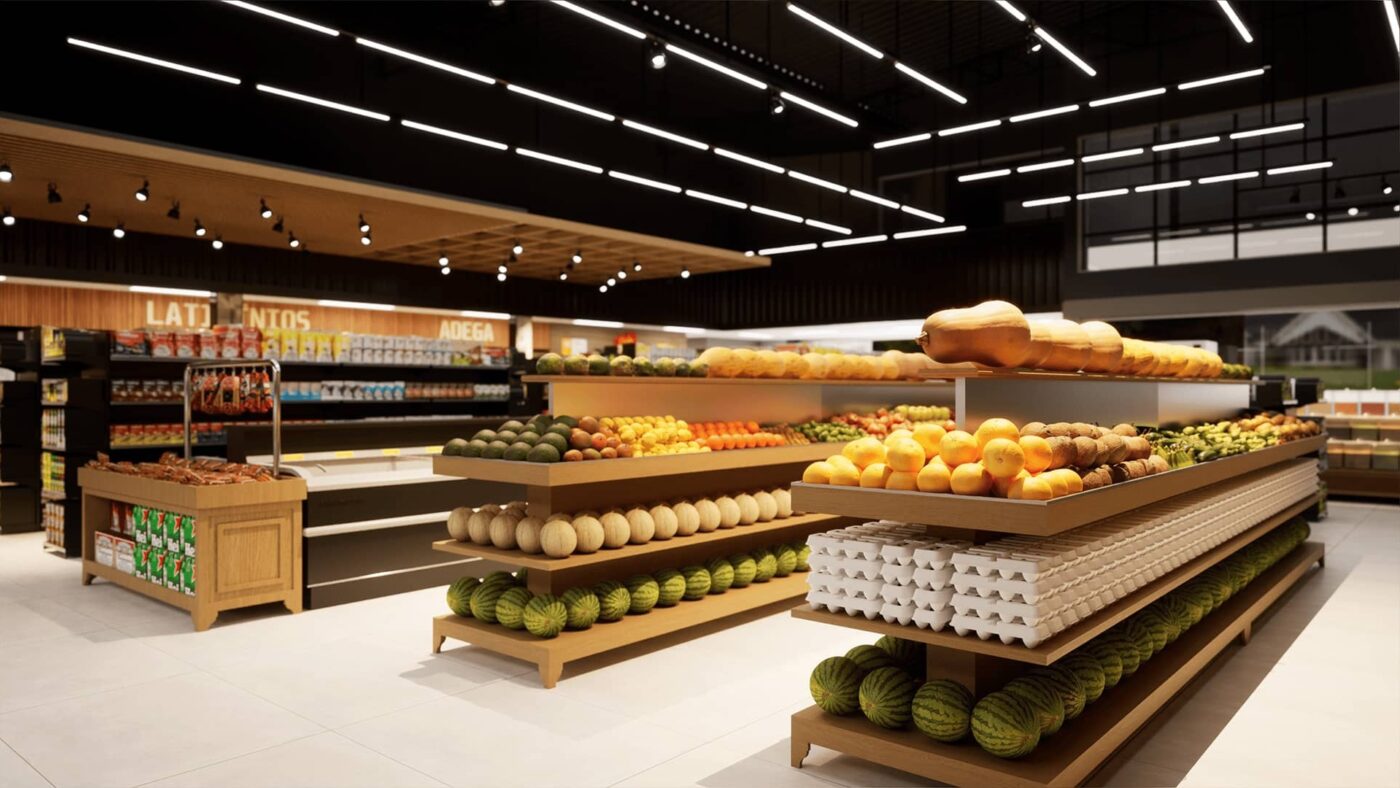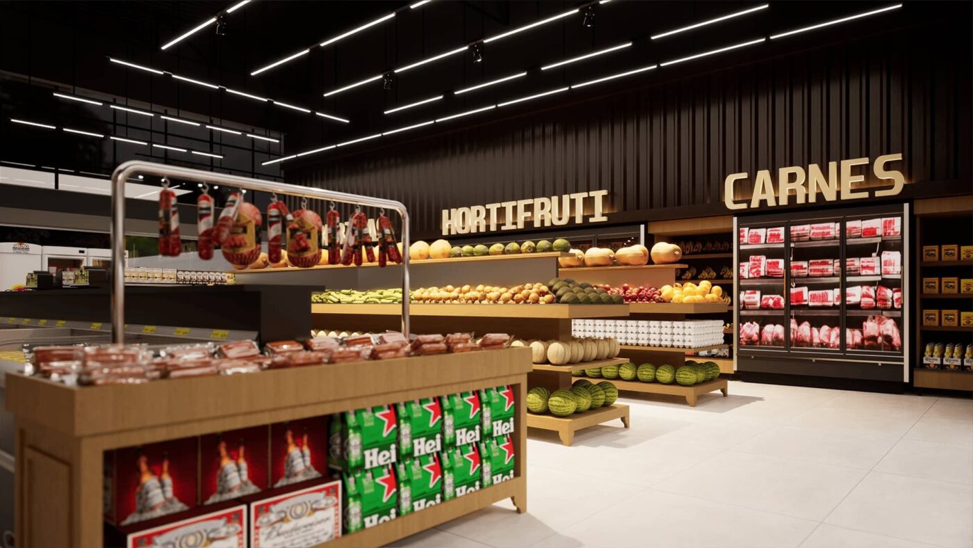 Com grande satisfação, apresentamos o nosso quarto serviço para a Hortbeef, uma rede de supermercados localizada na cidade de Barbacena. Neste projeto, criamos uma loja no estilo gourmet que oferece uma ampla variedade de produtos, desde panificados até hortifruti, açougue, grãos e empório, além de toda a linha de mercearia. Nosso objetivo foi desenvolver um ambiente moderno e sofisticado, ao mesmo tempo em que proporcionamos uma experiência única de compras para os clientes. Para isso, trabalhamos cuidadosamente no projeto de layout, combinando diferentes elementos de decoração e equipamentos de última geração, como por exemplo os caixas self-checkouts. Tudo para que os clientes possam encontrar tudo o que precisam em um só lugar, de maneira prática e agradável.